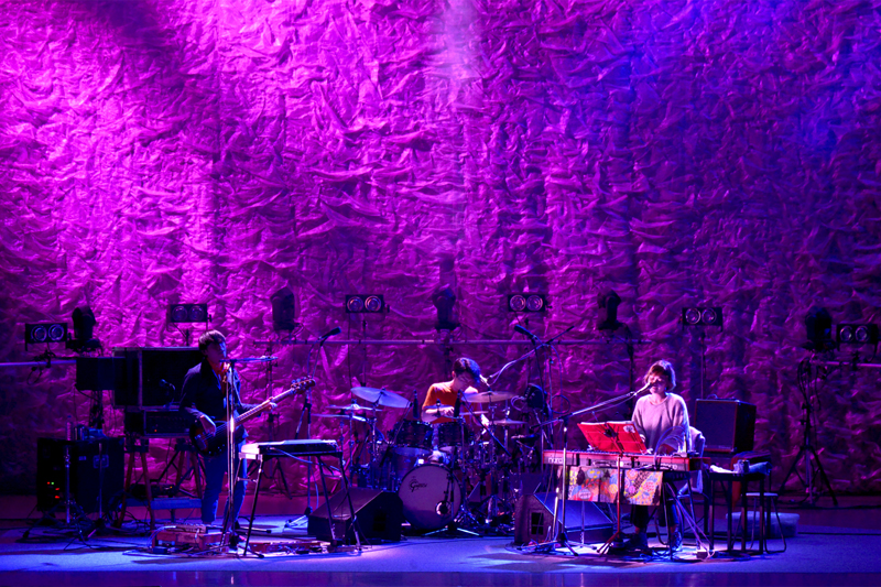 快晴でむかえた当日。昼過ぎから始まったリハーサルではQAC-222を通したドラムの音も確認。芯はもちろんのこと、倍音を含んだ胴鳴りもきちんと聴こえているので音作りもしやすく、モニターも決めやすい。ミトさんのベースのエフェクトも以前よりもはっきりしてぼやけずに鳴っているし、ピアノもレンジ広く、確かに左手の動きも埋もれずに届いてくる。